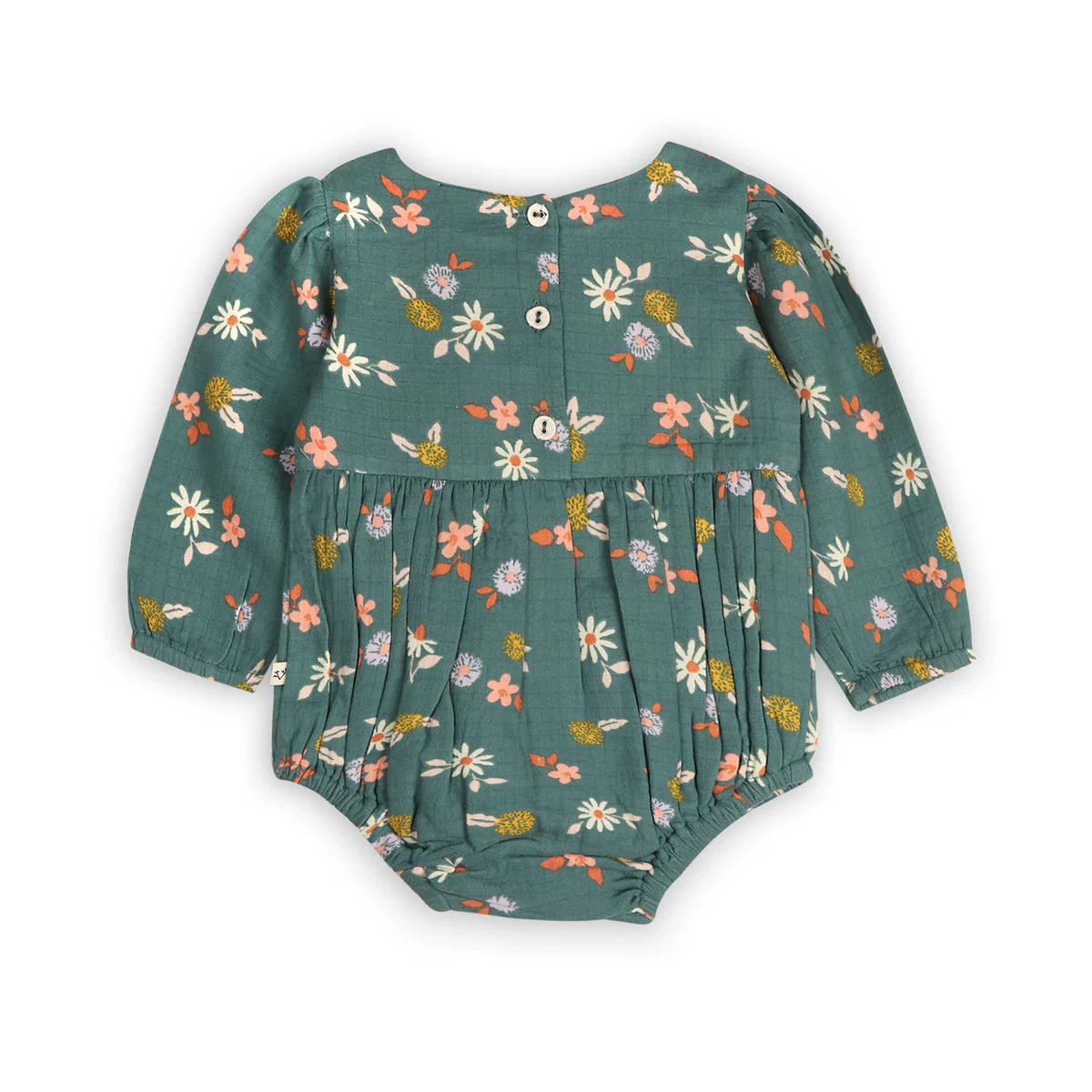 - All-season, super soft organic muslin baby romper with matching headband set; comfy and cozy.