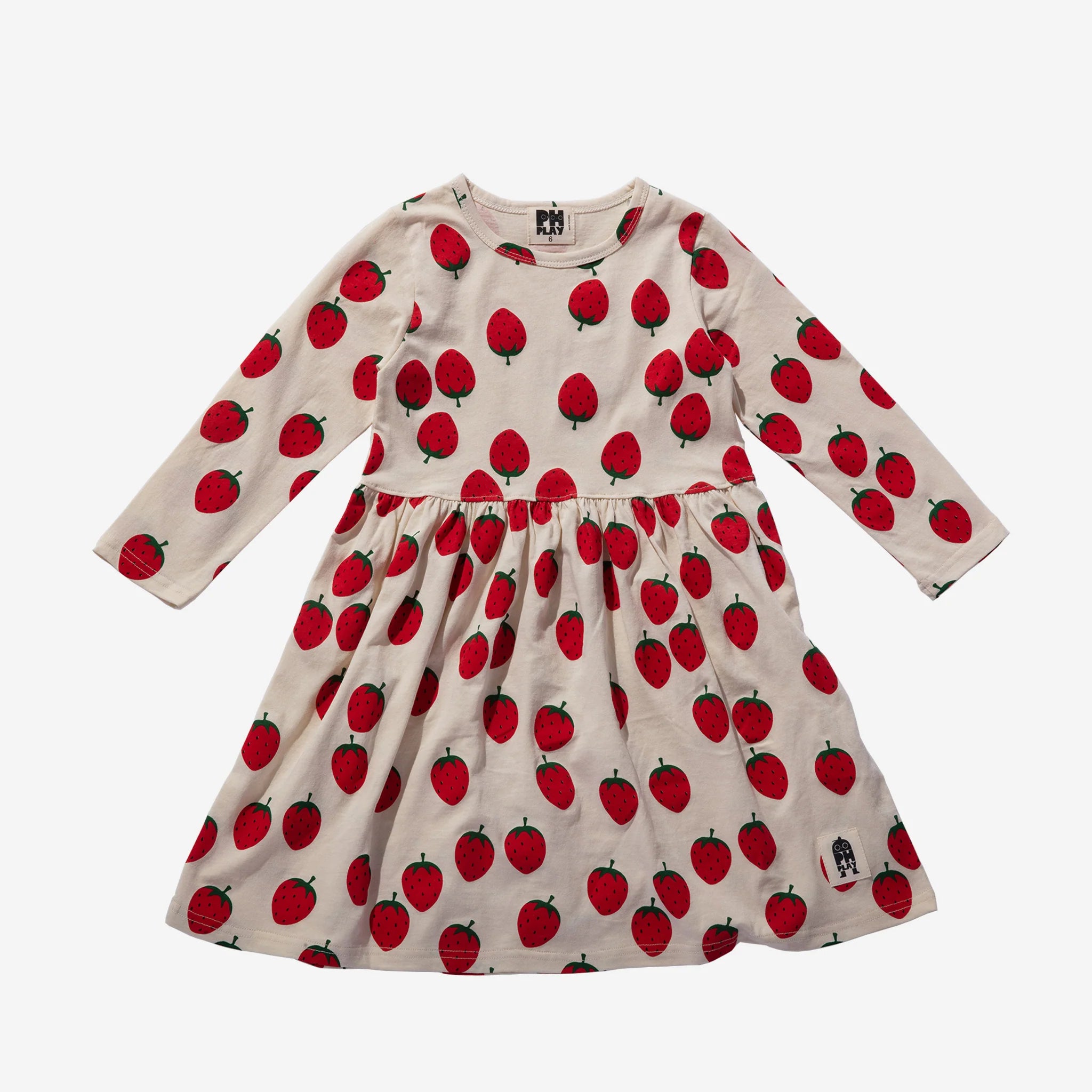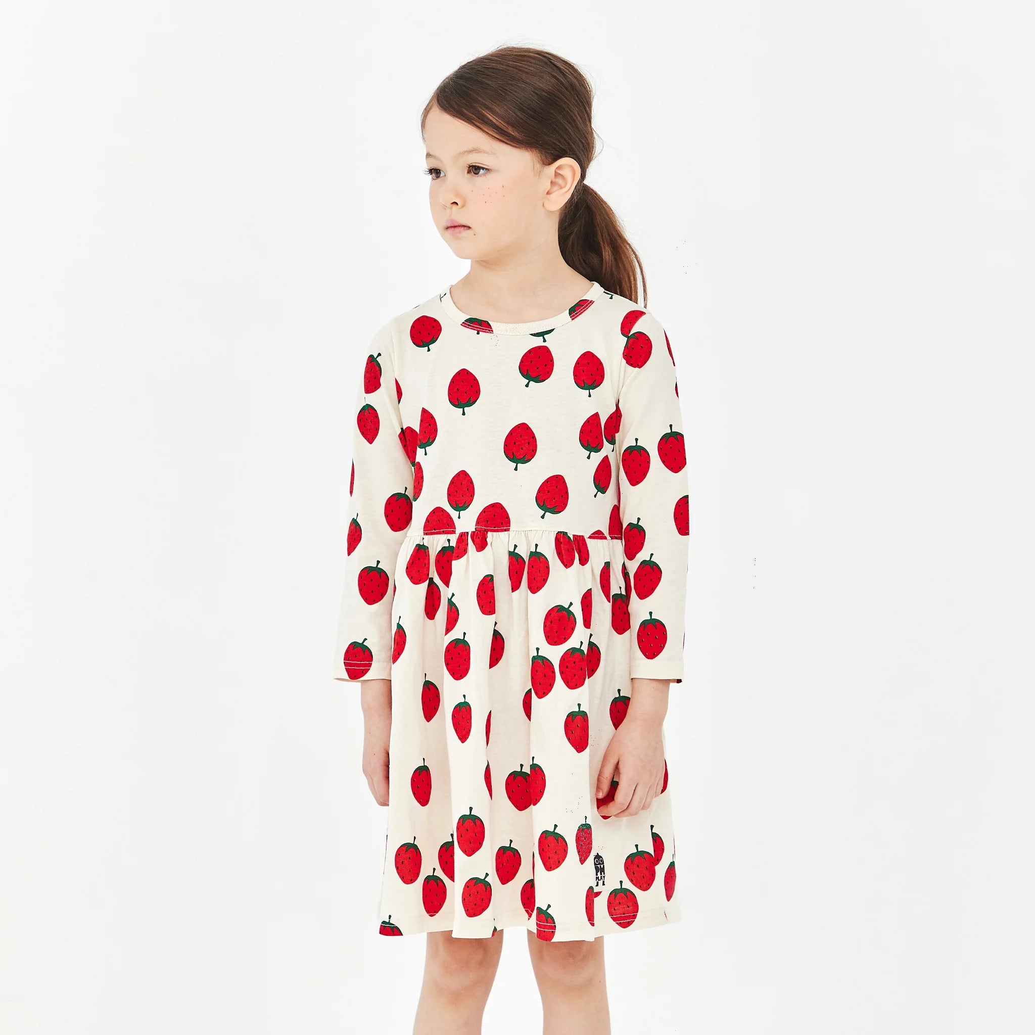 This adorable, printed dress is made with a special cut that gives your girl a fitted-loose fit that won't interfere with her play time.